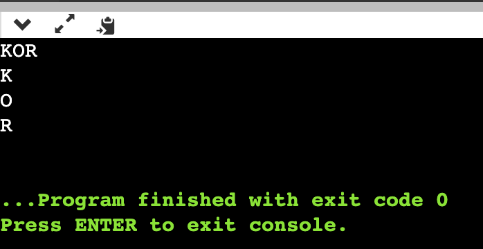 파이썬에서 각 문자 (예를 들면 String a = "KOR") 을 분리해서 한글짜씩 프린트 해보자고 하자.
